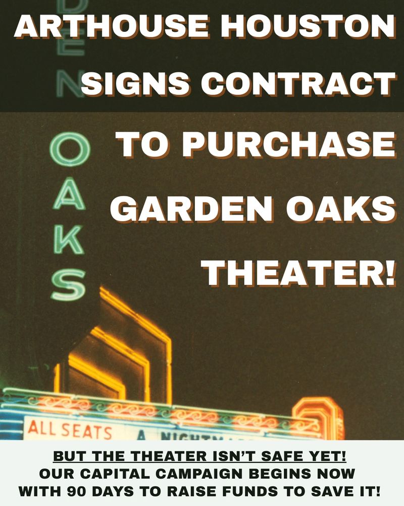 Arthouse Houston is a community-based 501(c)(3) non-profit dedicated to joyously enriching and preserving Houston’s artistic film community and arthouse spaces. This mission is furthered by improving accessibility to arts and cinema through programming, public outreach, partnerships, and education to benefit our vibrant, diverse community.